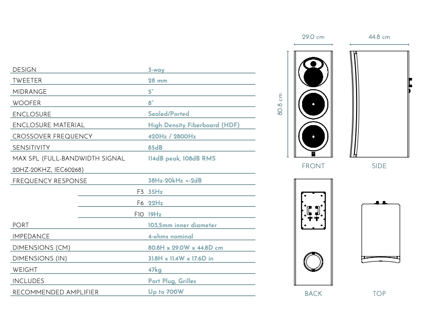 High end Tower performance in a smaller form factor, delivering high output, deep bass, and low distortion. Equipped with a 28mm Lithium-Magnesium tweeter, 5” Carbon-Graphene midrange, and dual 8” Aluminium bass drivers, it offers clear, dynamic sound with wide off-axis response.