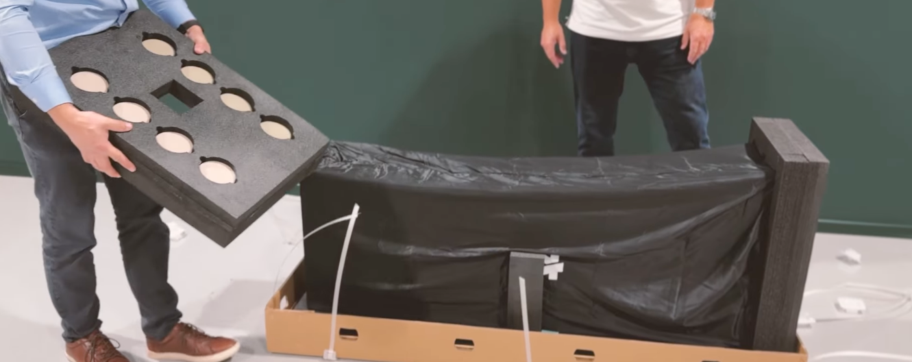 The sliders that allow you to move the speakers safely on carpet or hard floors are a bit hidden. They are placed inside the end cap covering the top of the speaker, as shown in the image below.